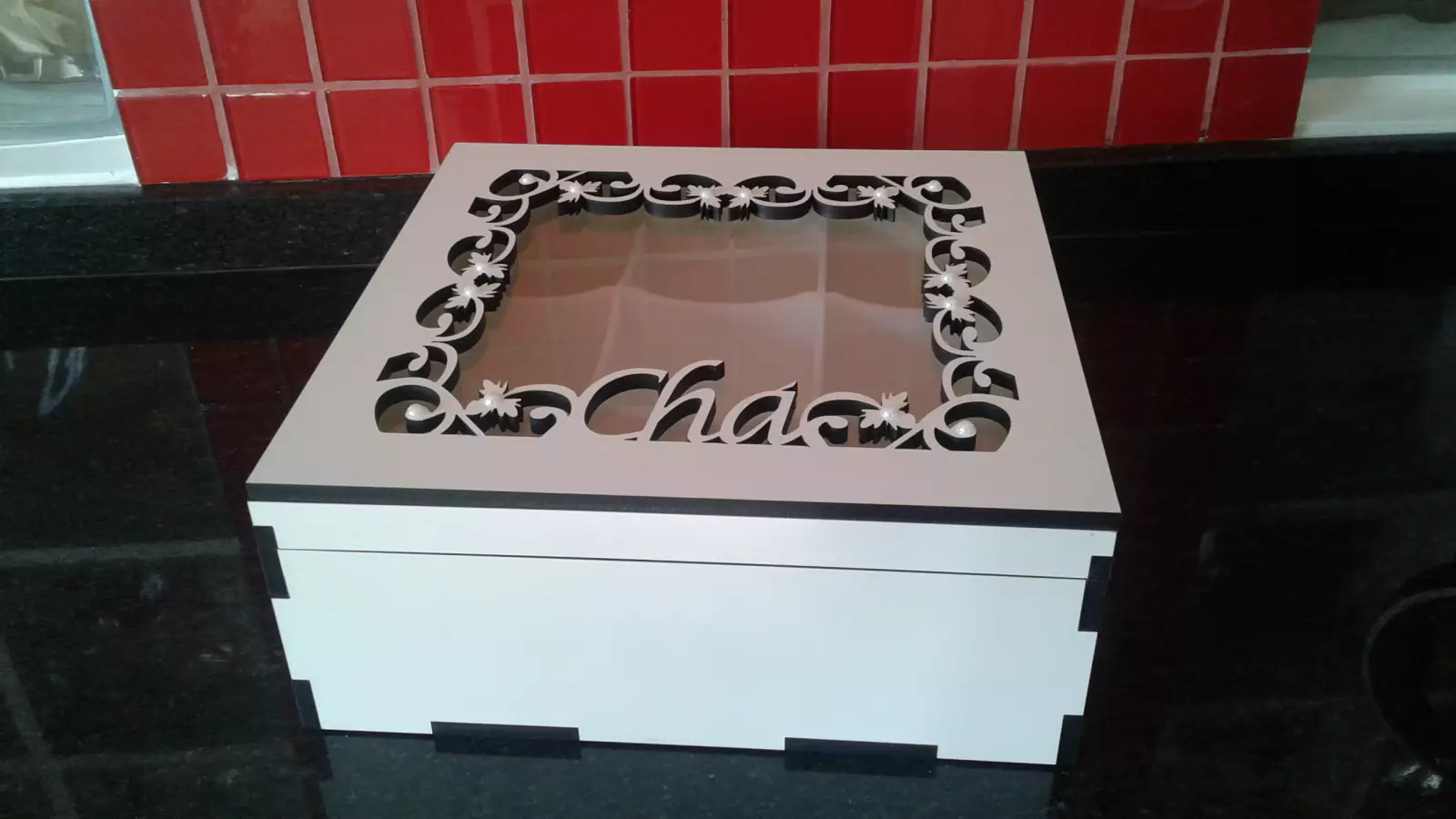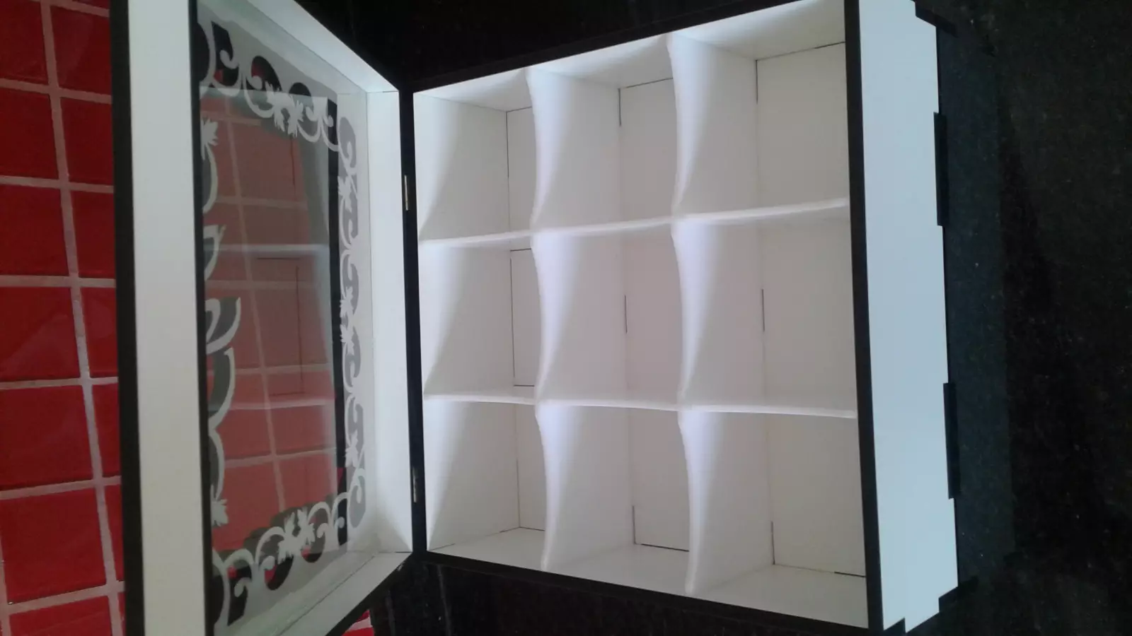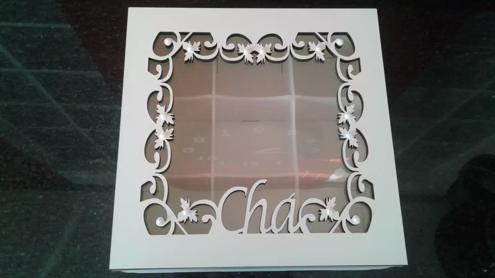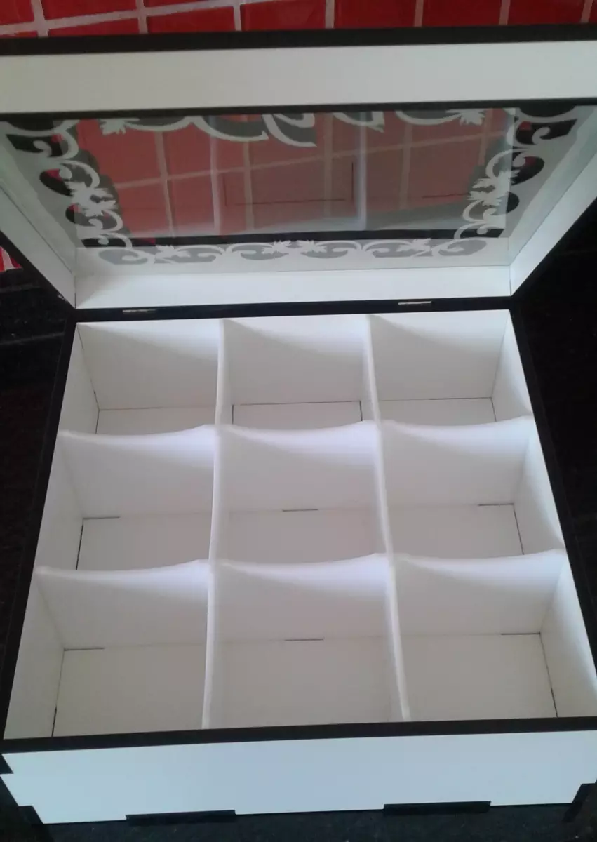 Linda caixa de chá em MDF BRANCO 6mm BRANCO Com 9 divisórias em acrílico branco