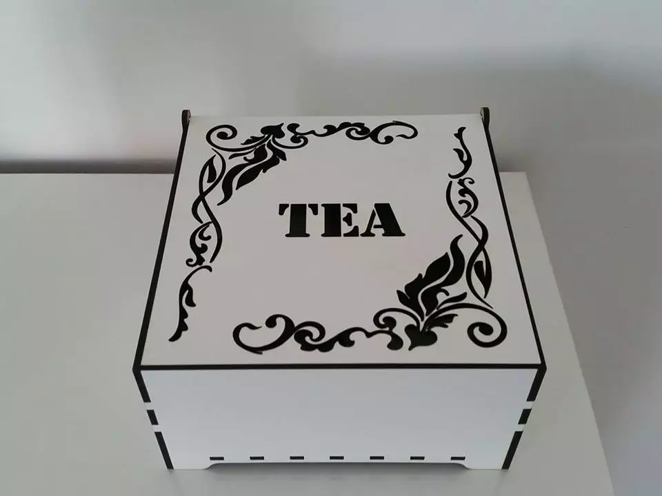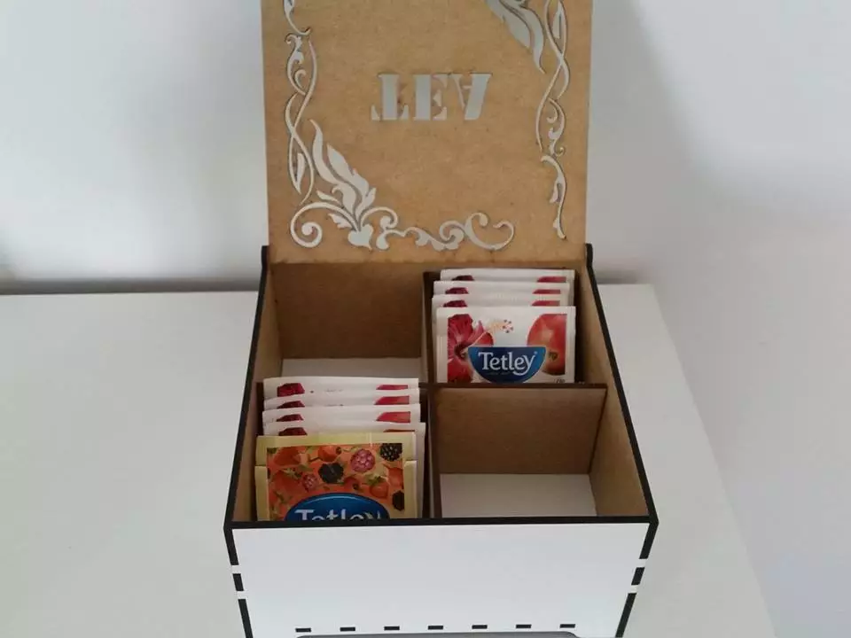 Linda caixa de chá em MDF BRANCO 3mm Com 4 divisórias