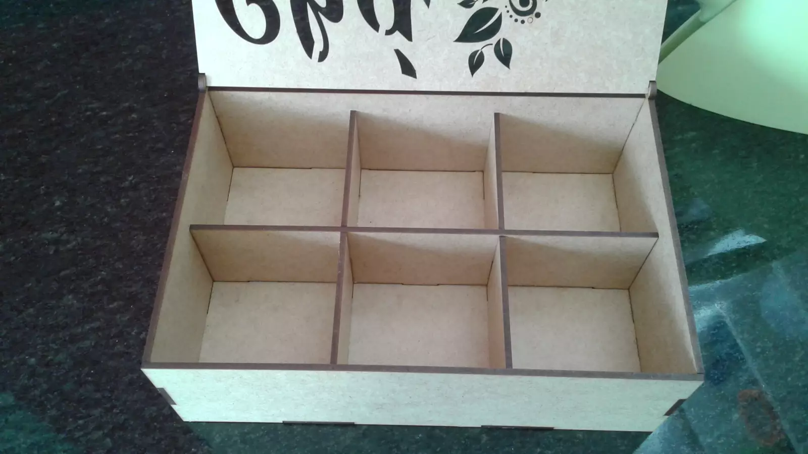 Linda caixa de chá em MDF cru 3mm Com 6 divisórias